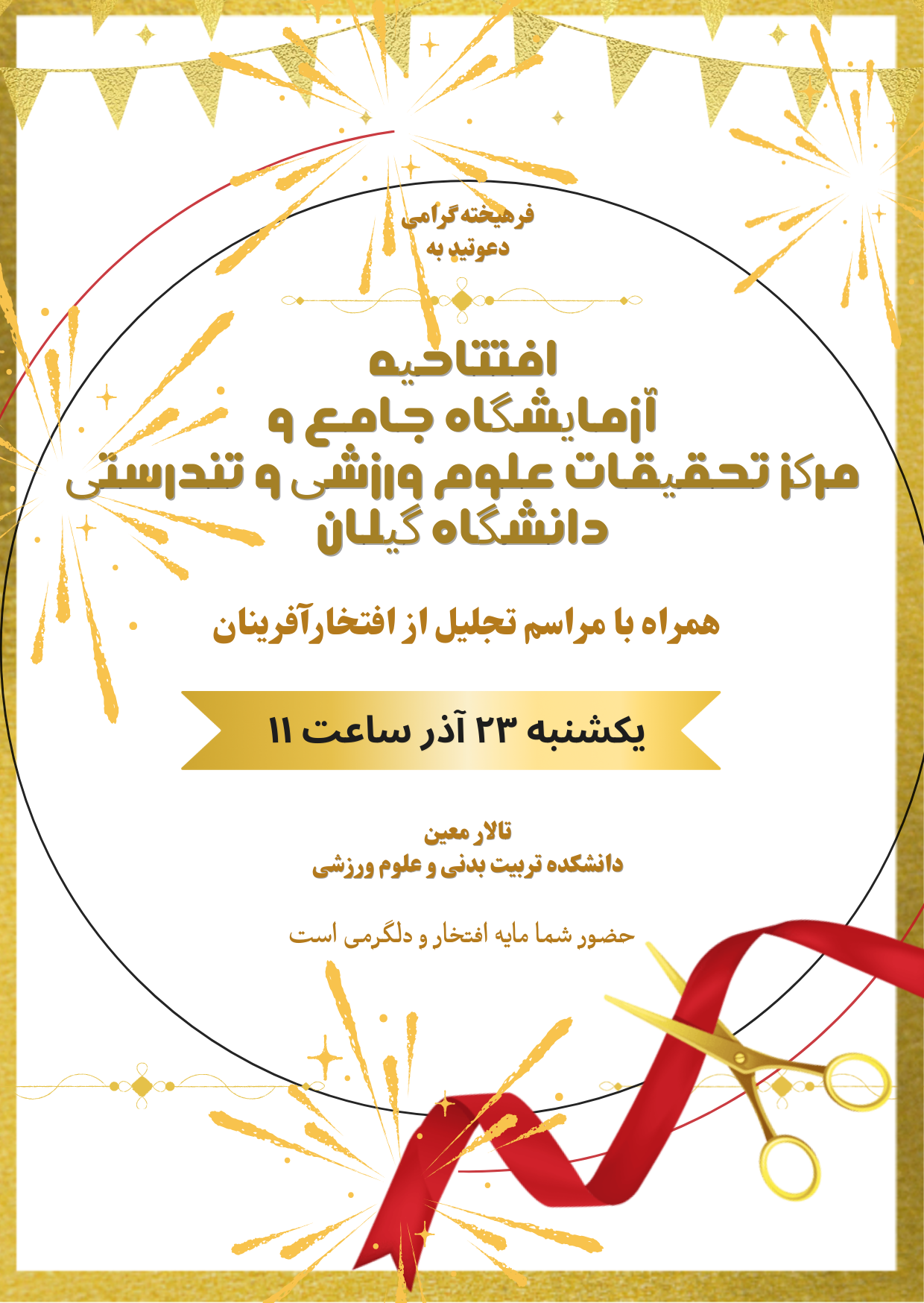 با تلاش معاونت پژوهشی و قطب علمی ورزش و تندرستی دانشگاه گیلان، سومین همایش دانشجویی ورزش و فرهنگ‌سازی اجتماعی در حوزه‌های فیزیولوژی و تغذیه ورزشی، آسیب‌شناسی ورزشی و حرکات اصلاحی، مدیریت ورزشی، و بیومکانیک ورزشی برگزار شد.  در این همایش که از ساعت ۱۰ صبح روز ۲۴ آذر ۱۴۰۴ آغاز شد، دانشجویان منتخب مقالات خود با موضوعات متنوع و جدید را در ۱۰ دقیقه ارائه کردند و سپس پرسش و پاسخ در پنل‌ تخصصی با حضور آقایان دکتر حامد زارعی، محمدجواد ضیا، مسعود خرسندی و مجتبی محمدی انجام شد. سخنرانان برتر: یاسمین احمدی در پنل فیزیولوژی ورزشی امید شاهانی در پنل آسیب‌شناسی ورزشی و حرکات اصلاحی مهیا شعبانی در پنل مدیریت ورزشی محمدرضا مولوی در پنل بیومکانیک ورزشی با تشکر از کلیه دست‌اندرکاران این همایش به‌ویژه دکتر جواد مهربانی، خانم شیرین بشری، دکتر حمید ذوالقدر و کلیه اعضای انجمن‌های علمی دانشکده.