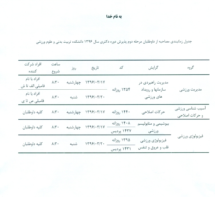 برنامه زمانبندی مصاحبه از داوطلبان مرحله دوم پذیرش دکتری 96