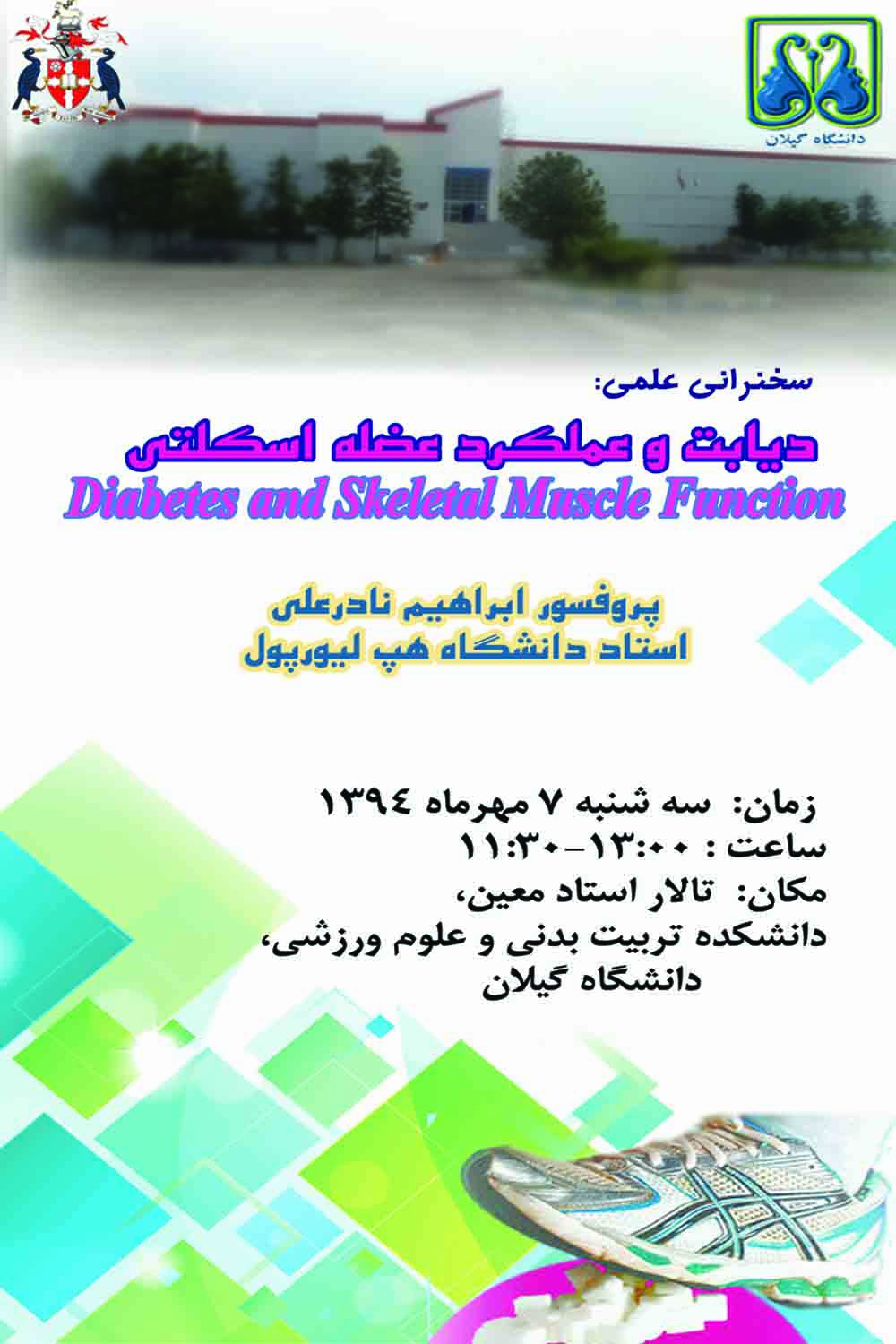 به دعوت دانشکده تربیت بدنی و علوم ورزشی، پروفسور ابراهیم نادرعلی استاد دانشگاه هپ لیورپول انگلستان در تاریخ 7 مهرماه 1394 از ساعت 30/11-00/13 در تالار استاد معین دانشکده تربیت بدنی با عنوان «دیابت و عملکرد عضله اسکلتی» سخنرانی می نمایند.