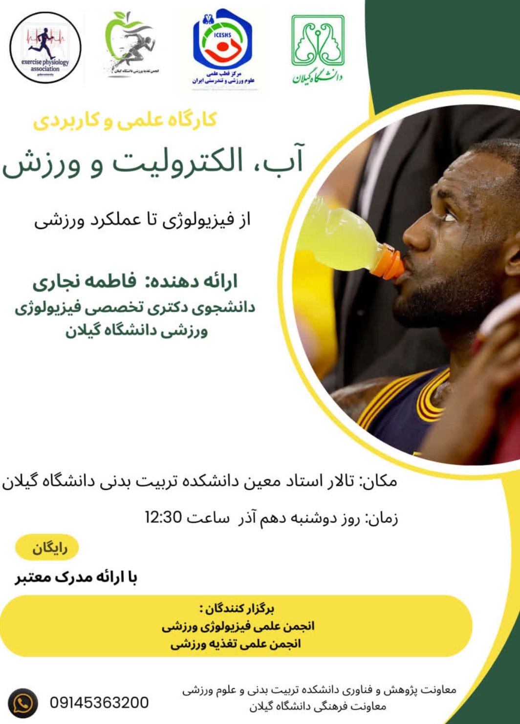 (۱۰ آذر) کارگاه آب و الکترولیت‌ها در ورزش
